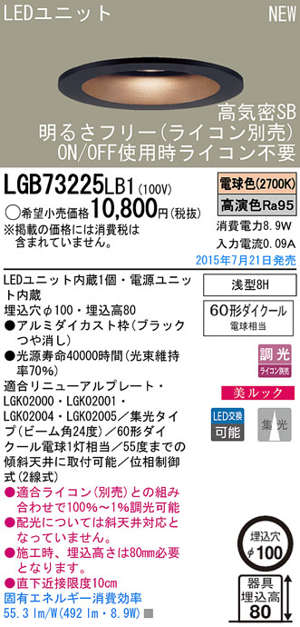 Panasonic LED ¥À¥¦¥ó¥é¥¤¥È LGB73225LB1