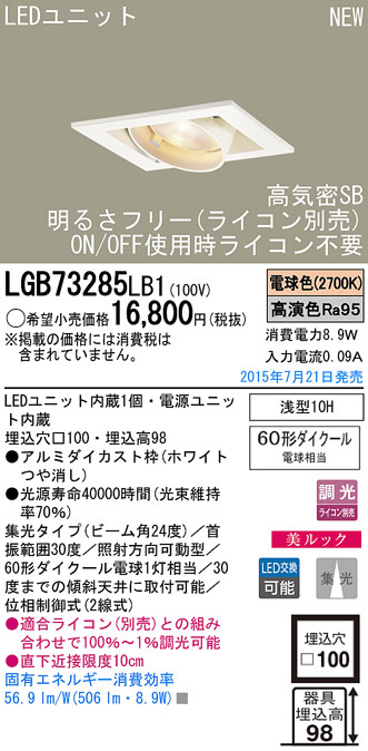 Panasonic LED ¥À¥¦¥ó¥é¥¤¥È LGB73285LB1