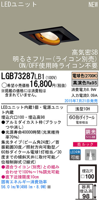 Panasonic LED ¥À¥¦¥ó¥é¥¤¥È LGB73287LB1