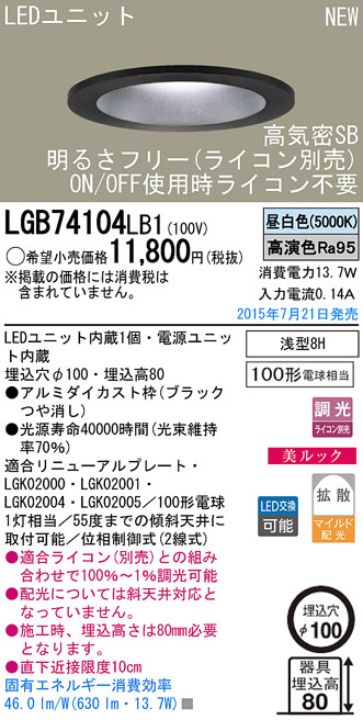 Panasonic LED ¥À¥¦¥ó¥é¥¤¥È LGB74104LB1