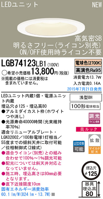 Panasonic LED ¥À¥¦¥ó¥é¥¤¥È LGB74123LB1
