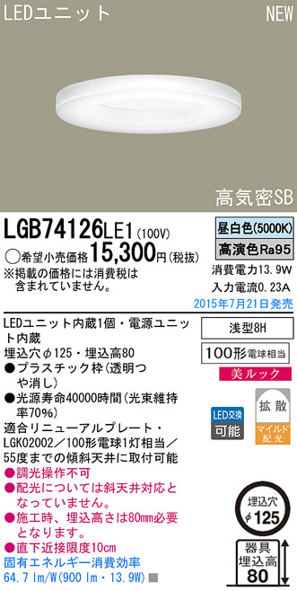 Panasonic LED ¥À¥¦¥ó¥é¥¤¥È LGB74126LE1