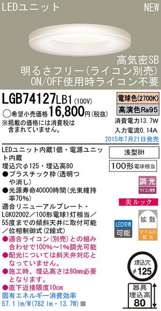 Panasonic LED ¥À¥¦¥ó¥é¥¤¥È LGB74127LB1
