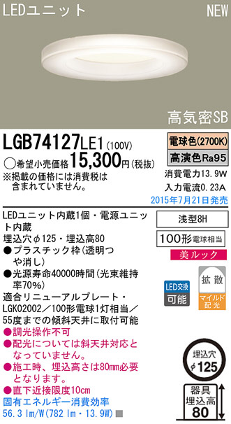 Panasonic LED ¥À¥¦¥ó¥é¥¤¥È LGB74127LE1