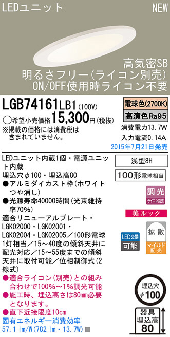 Panasonic LED ¥À¥¦¥ó¥é¥¤¥È LGB74161LB1