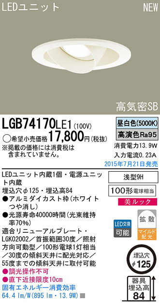 Panasonic LED ¥À¥¦¥ó¥é¥¤¥È LGB74170LE1