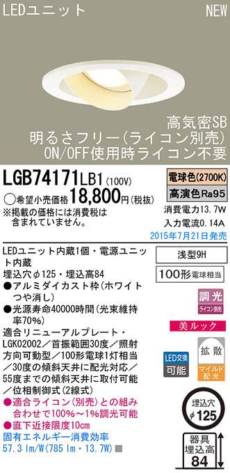 Panasonic LED ¥À¥¦¥ó¥é¥¤¥È LGB74171LB1