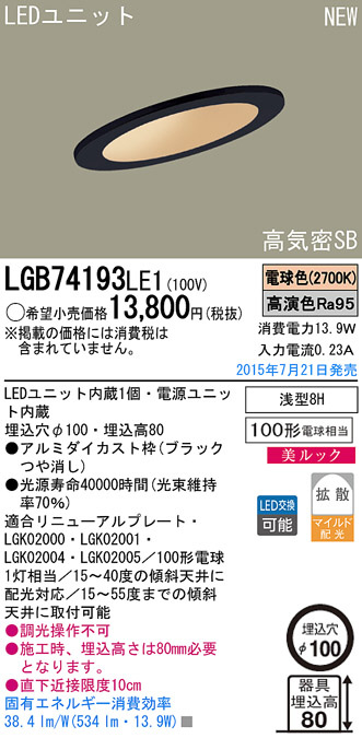 Panasonic LED ¥À¥¦¥ó¥é¥¤¥È LGB74193LE1
