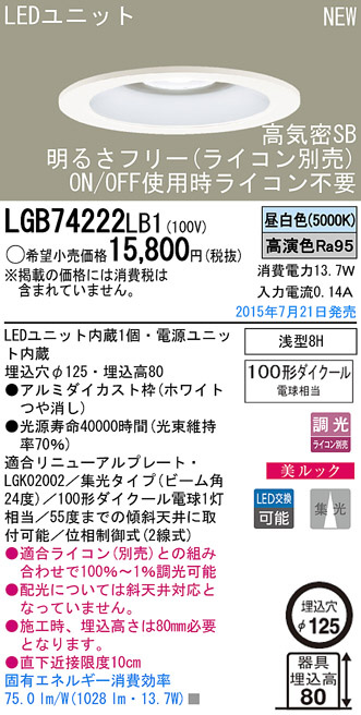 Panasonic LED ¥À¥¦¥ó¥é¥¤¥È LGB74222LB1