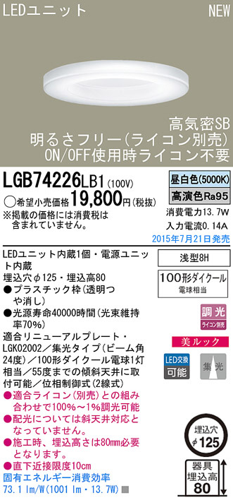 Panasonic LED ¥À¥¦¥ó¥é¥¤¥È LGB74226LB1