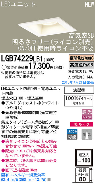 Panasonic LED ¥À¥¦¥ó¥é¥¤¥È LGB74229LB1