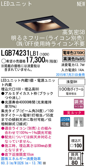 Panasonic LED ¥À¥¦¥ó¥é¥¤¥È LGB74231LB1