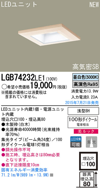 Panasonic LED ¥À¥¦¥ó¥é¥¤¥È LGB74232LE1