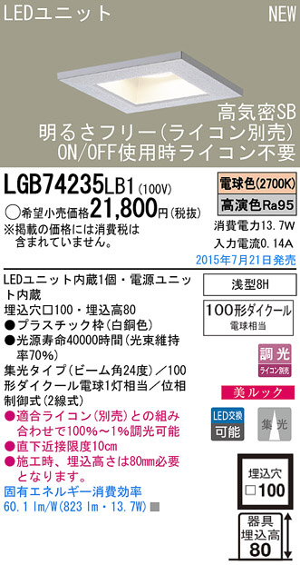 Panasonic LED ¥À¥¦¥ó¥é¥¤¥È LGB74235LB1