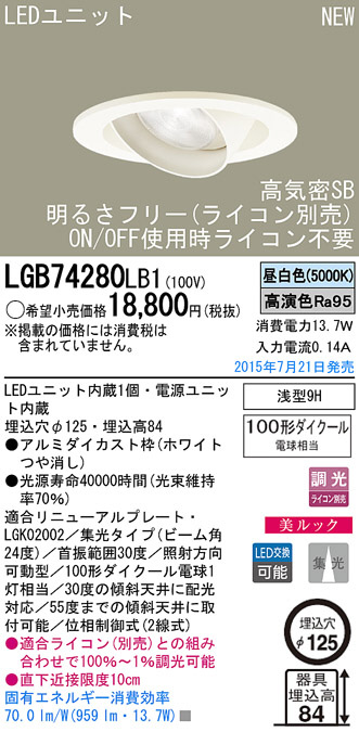 Panasonic LED ¥À¥¦¥ó¥é¥¤¥È LGB74280LB1
