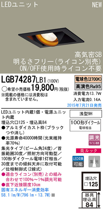 Panasonic LED ¥À¥¦¥ó¥é¥¤¥È LGB74287LB1