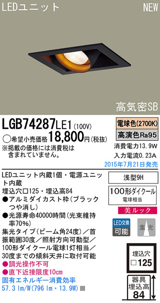 Panasonic LED ¥À¥¦¥ó¥é¥¤¥È LGB74287LE1