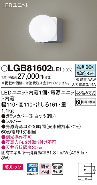 Panasonic LED ¥Ð¥¹¥ë¡¼¥à¥é¥¤¥È LGB81602LE1