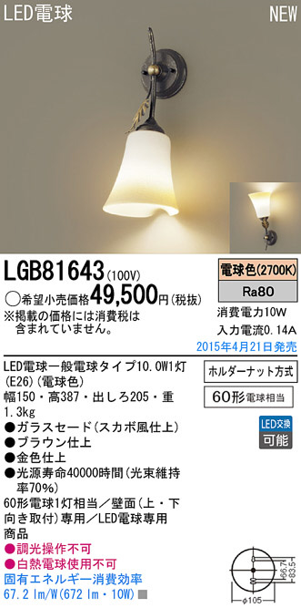 Panasonic LED ¥Ö¥é¥±¥Ã¥È LGB81643