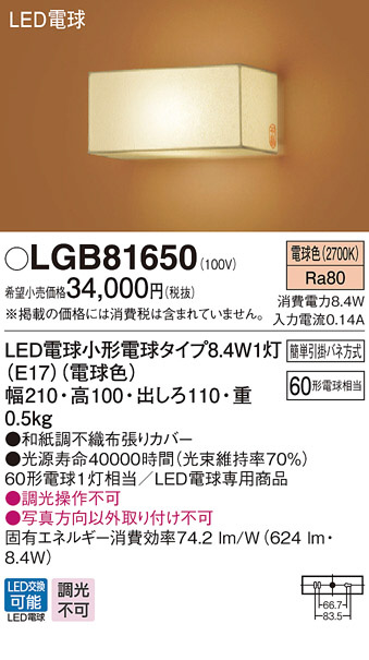 Panasonic LED ¥Ö¥é¥±¥Ã¥È LGB81650