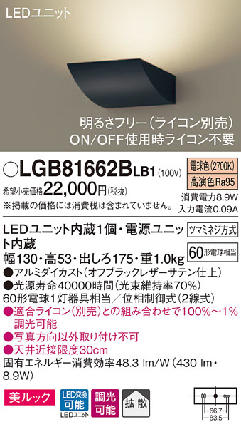 Panasonic ¥Ö¥é¥±¥Ã¥È LGB81662BLB1