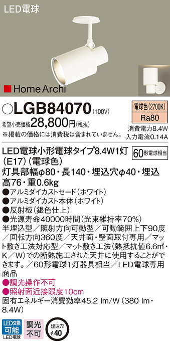 Panasonic LED ¥¹¥Ý¥Ã¥È¥é¥¤¥È LGB84070