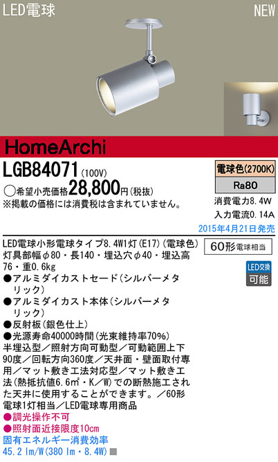 Panasonic LED ¥¹¥Ý¥Ã¥È¥é¥¤¥È LGB84071