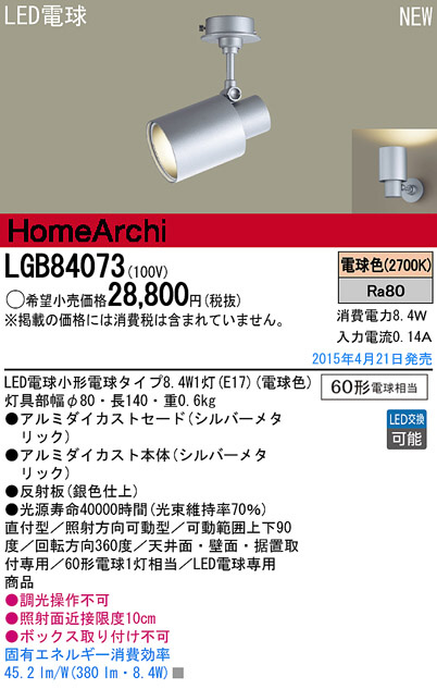 Panasonic LED ¥¹¥Ý¥Ã¥È¥é¥¤¥È LGB84073