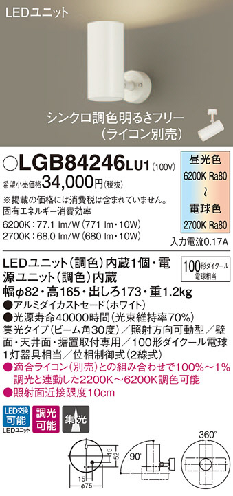 Panasonic ¥¹¥Ý¥Ã¥È¥é¥¤¥È LGB84246LU1