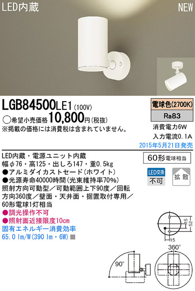 Panasonic LED ¥¹¥Ý¥Ã¥È¥é¥¤¥È LGB84500LE1