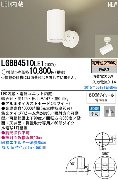 Panasonic LED ¥¹¥Ý¥Ã¥È¥é¥¤¥È LGB84510LE1
