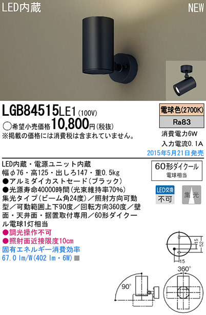 Panasonic LED ¥¹¥Ý¥Ã¥È¥é¥¤¥È LGB84515LE1