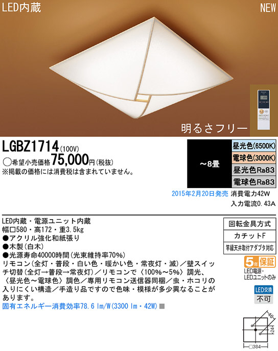 Panasonic LED ¥·¡¼¥ê¥ó¥°¥é¥¤¥È LGBZ1714