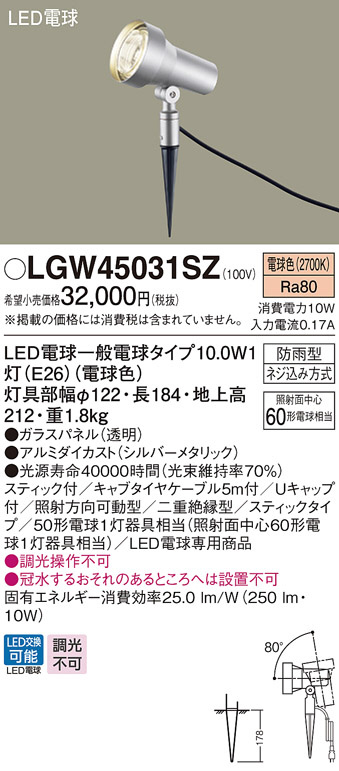 Panasonic LED ¥¨¥¯¥¹¥Æ¥ê¥¢¡¦¥¢¥¦¥È¥É¥¢ LGW45031SZ