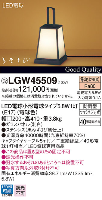 Panasonic LED ¥¨¥¯¥¹¥Æ¥ê¥¢¡¦¥¢¥¦¥È¥É¥¢ LGW45509