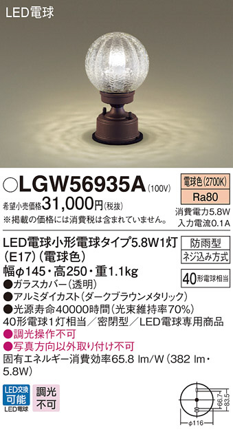 Panasonic LED ¥¨¥¯¥¹¥Æ¥ê¥¢¡¦¥¢¥¦¥È¥É¥¢ LGW56935A