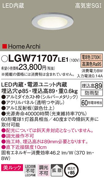 Panasonic ¥À¥¦¥ó¥é¥¤¥È LGW71707LE1