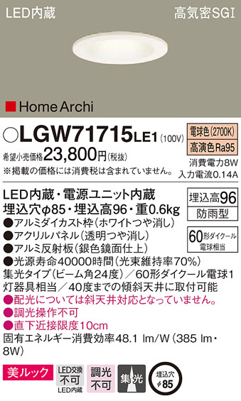 Panasonic ¥À¥¦¥ó¥é¥¤¥È LGW71715LE1