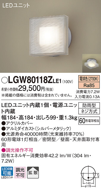 Panasonic LED ¥¨¥¯¥¹¥Æ¥ê¥¢¡¦¥¢¥¦¥È¥É¥¢ LGW80118ZLE1