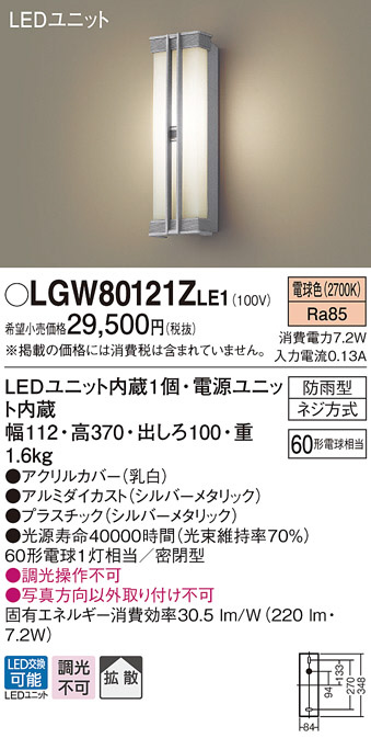 Panasonic LED ¥¨¥¯¥¹¥Æ¥ê¥¢¡¦¥¢¥¦¥È¥É¥¢ LGW80121ZLE1