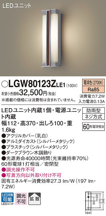Panasonic LED ¥¨¥¯¥¹¥Æ¥ê¥¢¡¦¥¢¥¦¥È¥É¥¢ LGW80123ZLE1