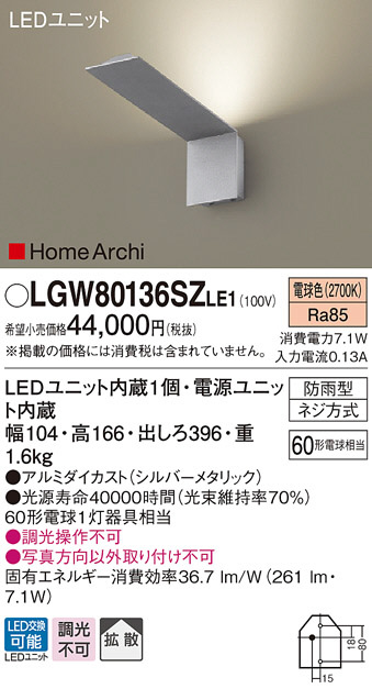 Panasonic LED ¥¨¥¯¥¹¥Æ¥ê¥¢¡¦¥¢¥¦¥È¥É¥¢ LGW80136SZLE1