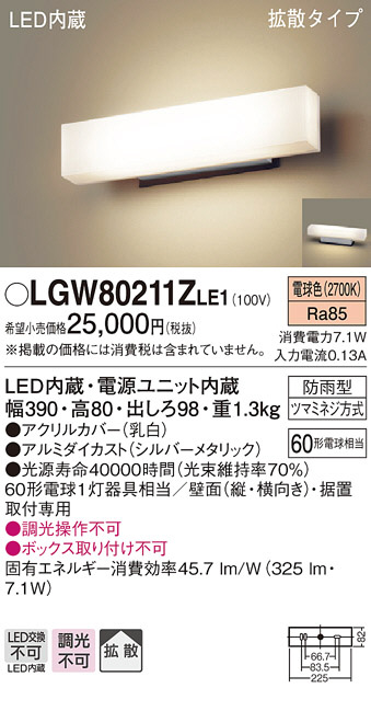 Panasonic LED ¥¨¥¯¥¹¥Æ¥ê¥¢¡¦¥¢¥¦¥È¥É¥¢ LGW80211ZLE1