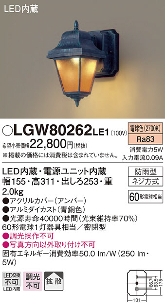 Panasonic LED ¥¨¥¯¥¹¥Æ¥ê¥¢¡¦¥¢¥¦¥È¥É¥¢ LGW80262LE1