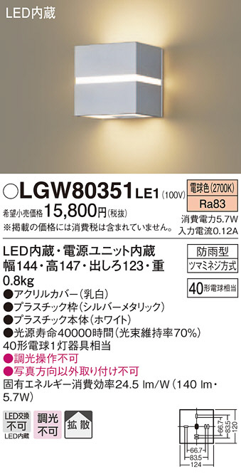 Panasonic ¥¨¥¯¥¹¥Æ¥ê¥¢¡¦¥¢¥¦¥È¥É¥¢ LGW80351LE1