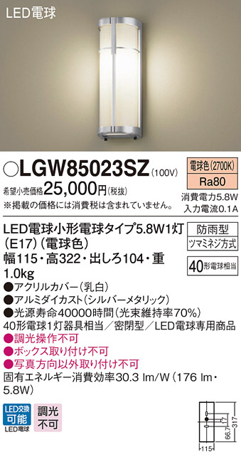 Panasonic LED ¥¨¥¯¥¹¥Æ¥ê¥¢¡¦¥¢¥¦¥È¥É¥¢ LGW85023SZ