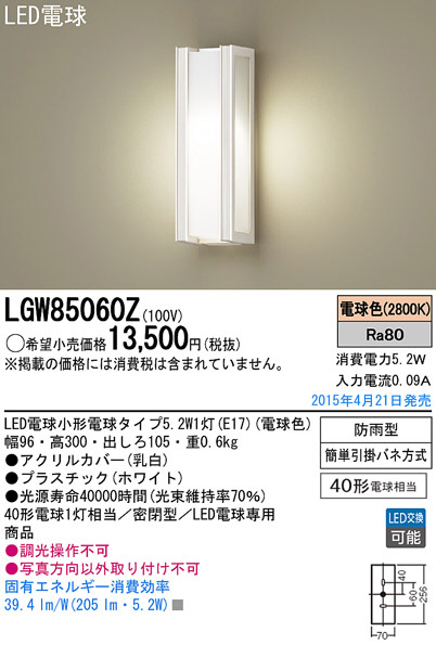 Panasonic LED ¥¨¥¯¥¹¥Æ¥ê¥¢¡¦¥¢¥¦¥È¥É¥¢ LGW85060Z