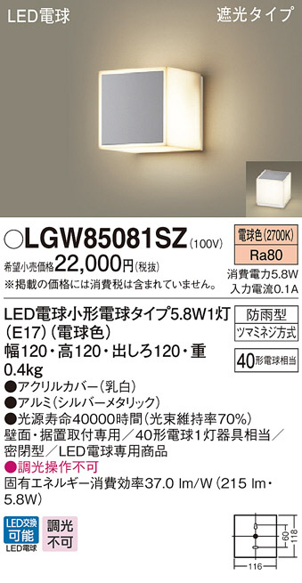 Panasonic LED ¥¨¥¯¥¹¥Æ¥ê¥¢¡¦¥¢¥¦¥È¥É¥¢ LGW85081SZ