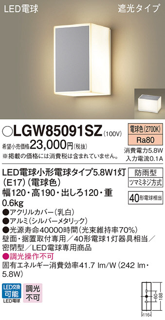 Panasonic LED ¥¨¥¯¥¹¥Æ¥ê¥¢¡¦¥¢¥¦¥È¥É¥¢ LGW85091SZ