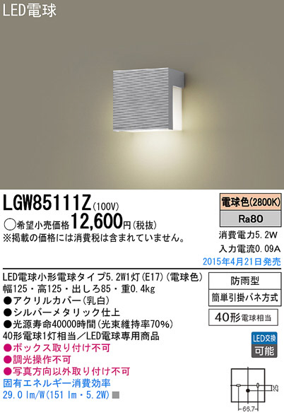 Panasonic LED ¥¨¥¯¥¹¥Æ¥ê¥¢¡¦¥¢¥¦¥È¥É¥¢ LGW85111Z